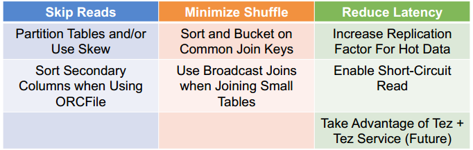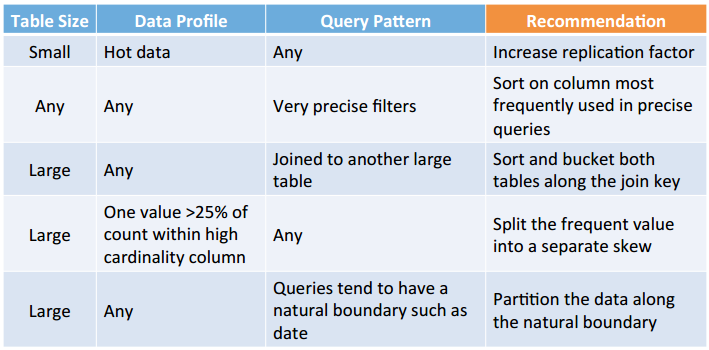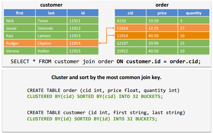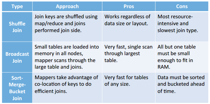 – Sort-Merge-Bucket Join: Scalable for large-table to large-table