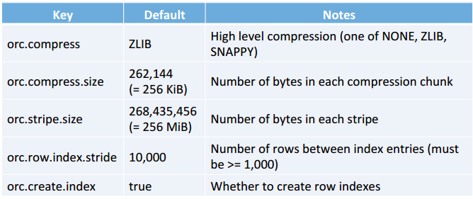 12.4 ORCFile Options and Defaults