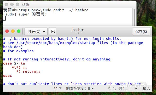 3、我们会打开这样一个bashrc文件窗口。