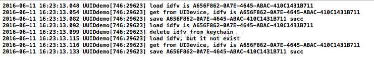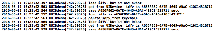 NSLog(@"get from UIDevice, idfv is %@", idfv);
