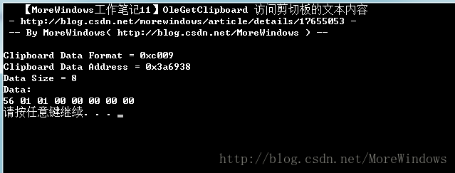 printf(" 【MoreWindows工作笔记11】OleGetClipboard 访问剪切板的文本内容n");
