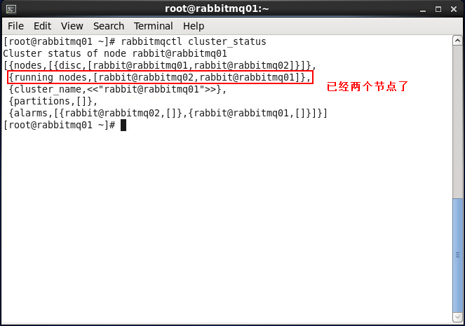 使用命令:rabbitmqctl cluster_status