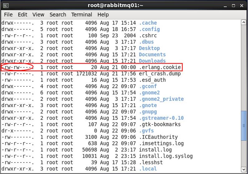 注意:默认.erlang.cookie的权限为400,所以需要先修改权限为允许修改,修改完后再还原为400的权限,否则启动rabbitmq-server的时候会报错。