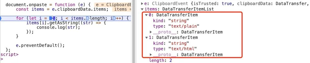const items = e.clipboardData.items;