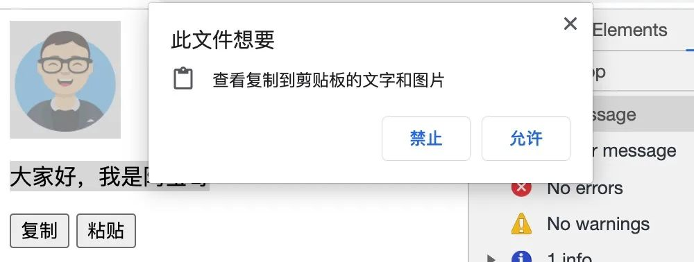 当调用 askReadPermission 方法后,将会向当前用户请求剪贴板读取权限,对应的效果如下图所示: