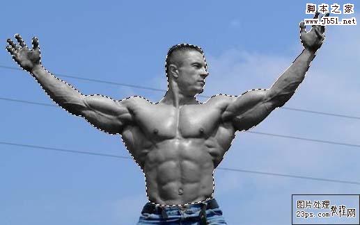 2、用磁性套绳工具抠出人物上半身来, 然后执行图像 > 调整 > 去色,复制该图层命名为上半身图层。