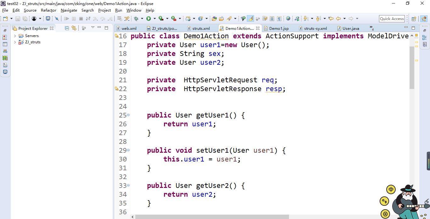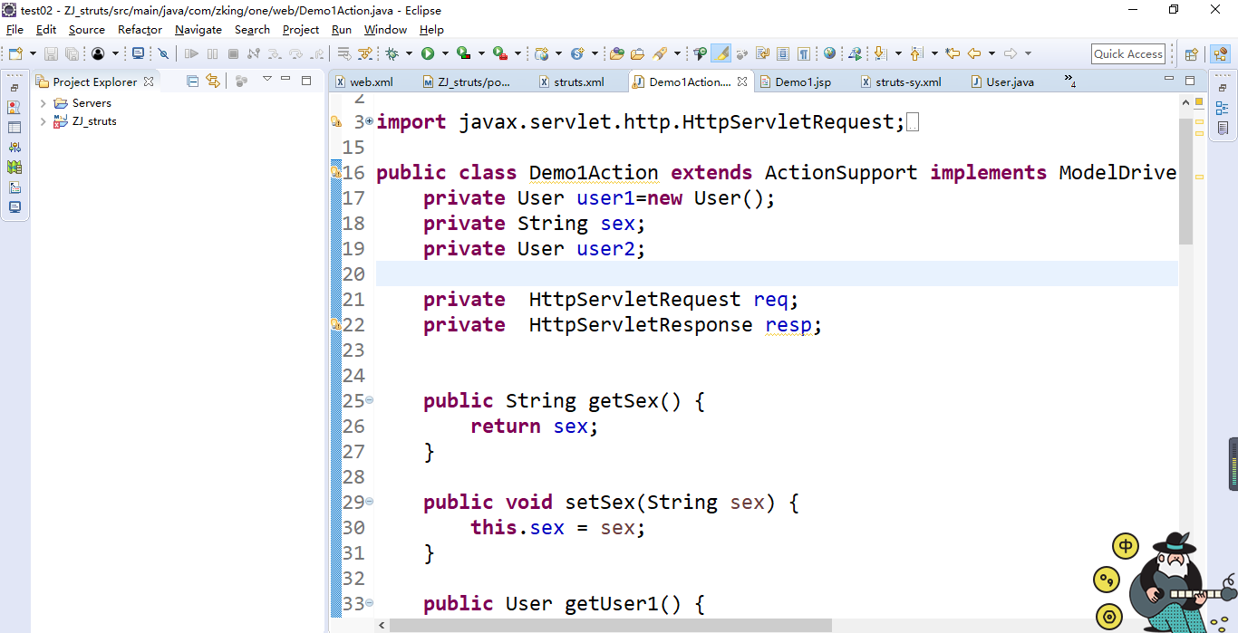 2、set方式传参:User中没有sex这个属性,那么就独自在action中写一个sex,生成get和set方法