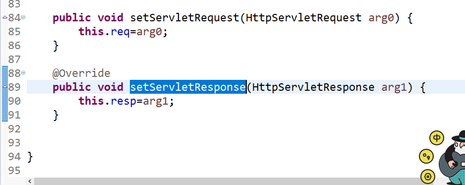 并且重写setServletRequest和setServletResponse方法: