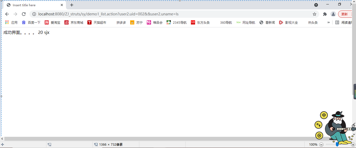 3、根据对象属性传参:同时在Demo1Action中定义一个user叫做user2并且写好user1和user2的get和set方法,但是并没有new,同时也能够运行出效果: