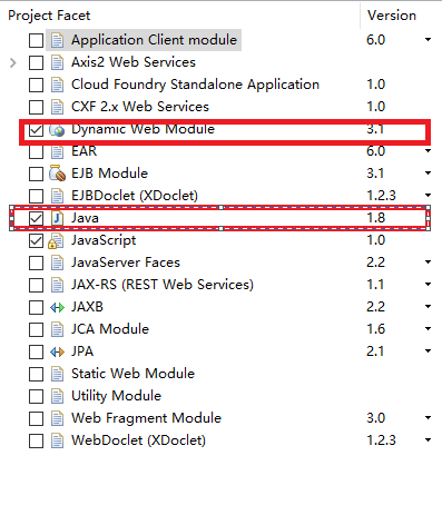 其次将java版本从2.3改为3.1,Dymanic的版本从1.5改为1.8(在这里纠正一点,之后完成改完版本之后,填写webapp时要写好绝对路径,就是src/main/webapp,而不是直接写webapp)