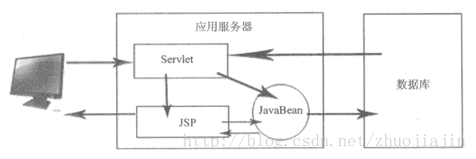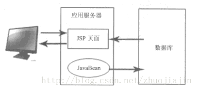 Model1也是MVC的一种,通过JSP+JavaBean来实现。因为JSP页面可以很方便的写入JavaBean的代码涉及业务逻辑,也可以结合Html用用于显示,又可以通过Javascript来控制流转。也就是说JSP在应用程序中担当了多种角色:负责与客户端的通信、处理请求、处理回复。这样的结构的优点是简单、方便,可以快速的完成应用开发。同时,也因为这样的结构也导致了其开发的分配以及后期的维护的困难。如图为Model1的结构(注:图片来源《STRUTS实用开发指南 基于MVC+MYECLIPSE的JAVA WEB应用开发》3页)