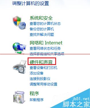 3、选择“硬件和声音”,在“设备和打印机”一栏下选择“鼠标”。