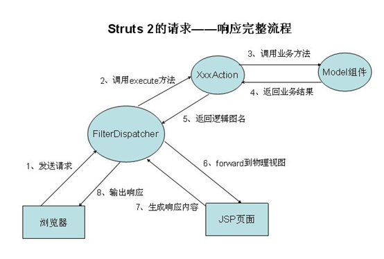 通过对Struts2执行过程的分析,可以发现Struts2应用的整个过程都是按照请求/响应的过程执行的,如下图: