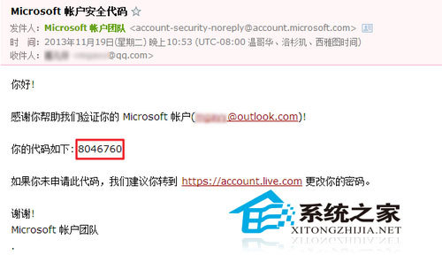 5.微软会将登陆Microsoft账户的验证代码发到绑定的邮箱或手机号码中;