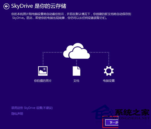 图9 选择是否启用SkyDrive云存储