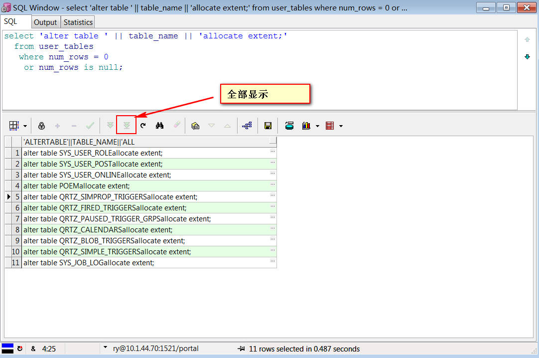 将查询出来的语句复制到一个新的sql窗口执行