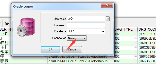 登录时connect as 选择normal