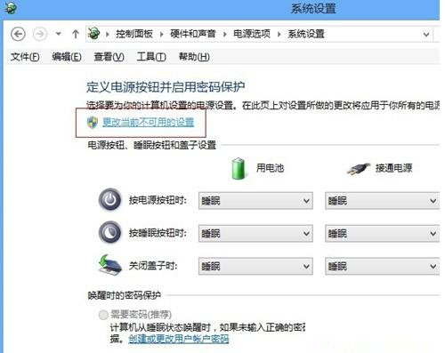 4、在弹出界面,发现部分选项无法更改,先点击“更改当前不可用的设置”,如下图所示,