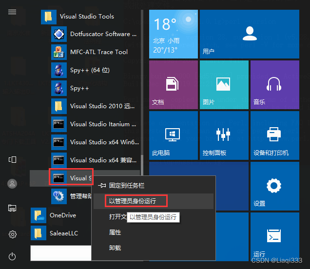 编译64位库打开:开始菜单->所有程序->Microsoft Visual Studio 2010->Visual Studio Tools->Visual Studio x64 Win64命令提示(2010),(PS:以管理员身份运行)
