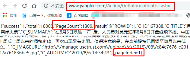 点开上图中的.ashx文件(注意:此文件包含网页信息,别的网站可能为js文件)发现,文件中含有字段:PageCount和pageIndex,分别代表总页数和当前页