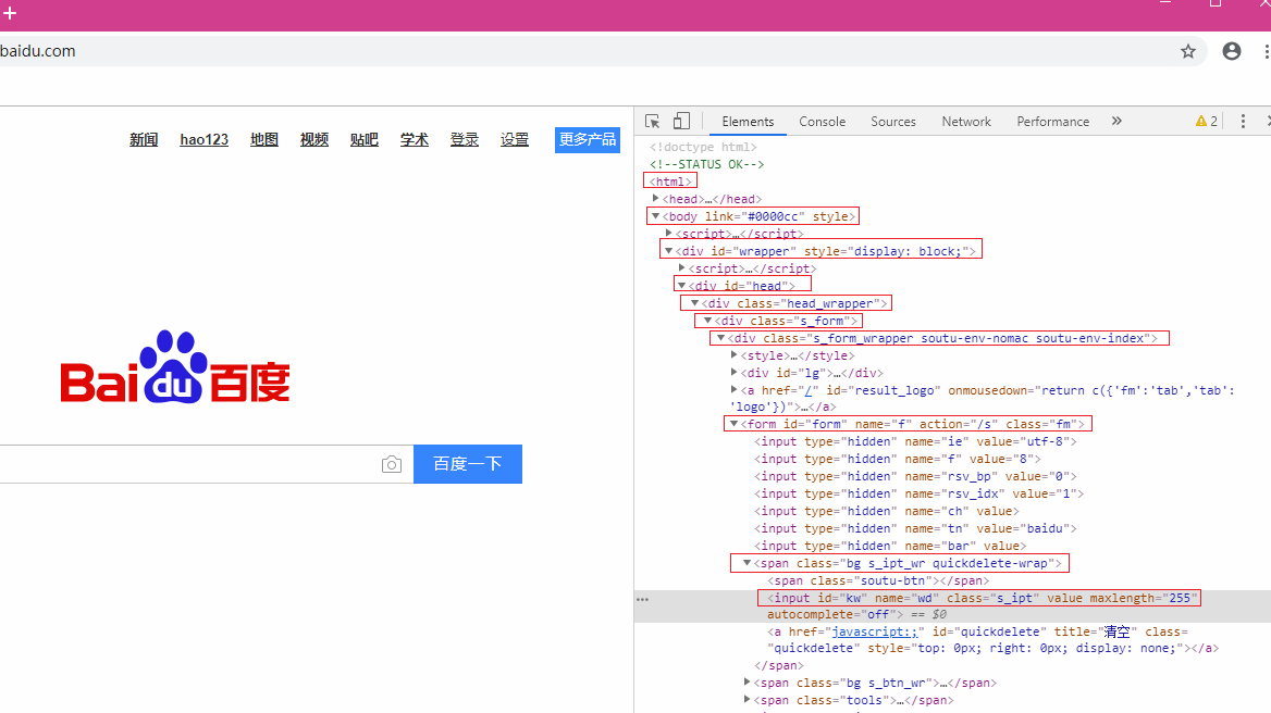 1 #几种定位方式: 2 #Autotest.py 3 from selenium import webdriver 4 from selenium.webdriver.common.by import By 5 import time 6 7 dr = webdriver.Chrome() 8 dr.get("http://www.baidu.com") 9 10 #通过各种元素:name,id,class,tag,text 11 12 dr.find_element_by_name('wd').send_keys('apple') #name 13 dr.find_element_by_id('su').click #id 14 dr.find_element_by_class_name('s_ipt').send_keys('apple') #class 15 dr.find_element_by_tag_name('') #tag 16 dr.find_element_by_link_text('新闻').click() #通过文字链接打开下级页面 17 dr.find_element_by_partial_link_text('一段很长的').click()#通过长文字的一部分定位元素 18 19 20 #从一组相同标签的元素里找到目标元素 21 inputs = dr.find_elements_by_tag_name('input') 22 for i in inputs: 23 if i.get_attribute('name') == "wd": 24 i.send_keys('apple') 25 dr.find_element_by_id('su').click() 26 27 28 #xpath定位元素: 29 dr.find_element_by_xpath("//input[@id='kw']").send_keys("天气") #xpath定位元素:input下面: id='kw' 30 dr.find_element_by_xpath("//*[@id='kw']").send_keys("天气") #xpath定位元素:*=查找所有元素: id='kw' 31 32 #父标签form,id='form' 下面第1个标签/span下面第1个/input(如果要定位的span是第二个则为/span[2]) 33 dr.find_element_by_xpath("//form[@id='form']/span[1]/input[1]").send_keys("天气") #这里【1】可以省略,只是为了理解 34 35 dr.find_element_by_xpath("/html/body/div/div/div/div/div/form/span/input").send_keys('天气') #xpath: 绝对路径定位元素 36 37 #css选择器定位: 38 dr.find_element_by_css_selector('.s_ipt').send_keys("天气") #.class 39 dr.find_element_by_css_selector('#kw').send_keys("天气") #ID 40 dr.find_element_by_css_selector('input[maxlength="255"]').send_keys("天气") 41 42 #下面这个意思是css定位:标签form(.表示class)class='fm' 下面的子标签span 的 子标签 input的 id='kw'(#表示id) 43 dr.find_element_by_css_selector('form.fm > span > input#kw').send_keys("天气") 44 45 46 #By类定位,需要引入By类 47 #dr.find_element(By.ID,'kw').send_keys('天气') 48 #dr.find_element(By.NAME,'wd').send_keys('天气') 49 #dr.find_element(By.CLASS_NAME,'s_ipt').send_keys('天气') 50 #dr.find_element(By.TAG_NAME,'input').send_keys('天气') #这里定位不到,需要类似上面的for循环 51 #dr.find_element(By.LINK_TEXT,u'新闻').click() 52 #dr.find_element(By.PARTIAL_LINK_TEXT,u'新').click() 53 #dr.find_element(By.XPATH,"//*[@class='s_ipt']").send_keys('天气') 54 #dr.find_element(By.CSS_SELECTOR,'form.fm > span > input#kw').send_keys('天气') 55 56 time.sleep(3) 57 dr.quit() 58 59