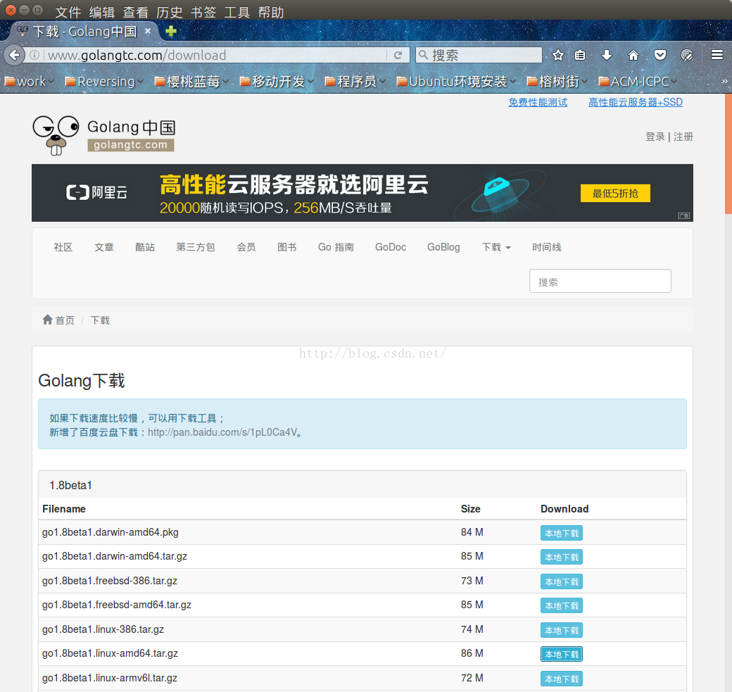 从中选择适当的版本下载。选择了文件go1.8beta1.linux-amd64.tar.gz进行下载。