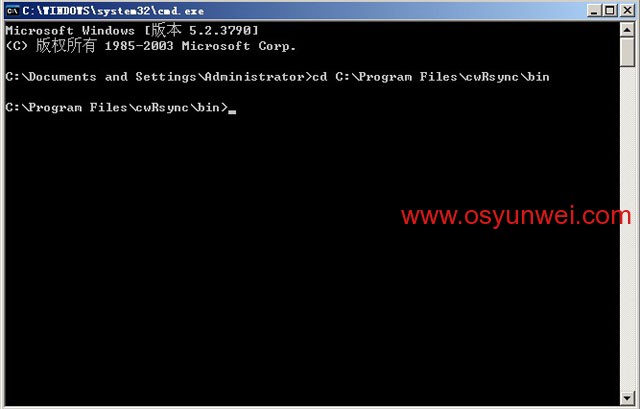 开始-运行-cmd,输入cd C:\Program Files\cwRsync\bin 回车