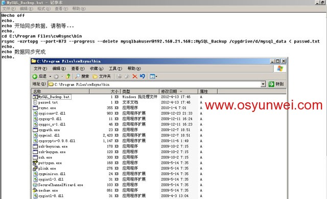 继续在C:\Program Files\cwRsync\bin目录,新建MySQL_Backup.bat