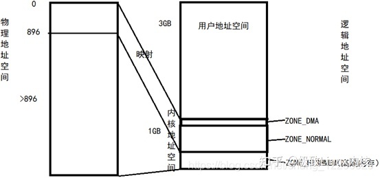 vmalloc 在ZONE_HIGHMEM区,分配大内存块,物理地址不连续,适合对地址连续无要求的场合 因为虚拟地址更新页表,故效率较低