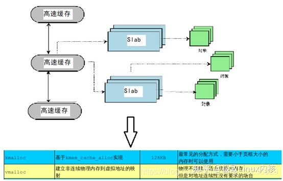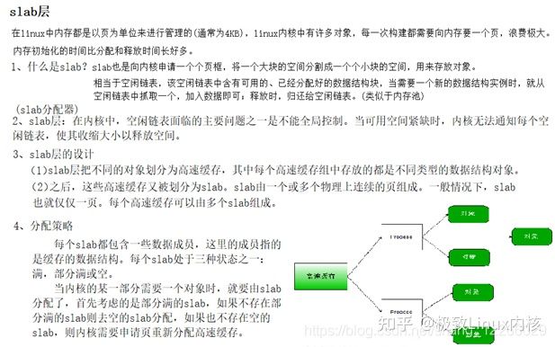 slab分配器中用到了对象这个概念,所谓对象就是内核中的数据结构以及对该数据结构进行创建和撤销的操作。它的基本思想是将内核中经常使用的对象 放到高速缓存中,并且由系统保持为初始的可利用状态。比如进程描述符,内核中会频繁对此数据进行申请和释放。当一个新进程创建时,内核会直接从slab分配器的高速缓存中获取一个已经初始化了的对象;当进程结束时,该结构所占的页框并不被释放,而是重新返回slab分配器中。如果没有基于对象的slab分 配器,内核将花费更多的时间去分配、初始化以及释放一个对象。