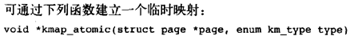 当必须创建一个映射而当前的上下文不能睡眠时,内核提供临时映射。有一组保留的映射,他们可以存放新创建的临时映射。