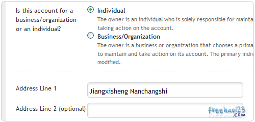 3、然后是填写你的域名注册信息,一般选择是个人。