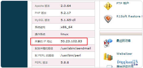 3、域名绑定到了空间,还得做A记录将该域名指向该空间上。先找到老鹰主机的IP地址。