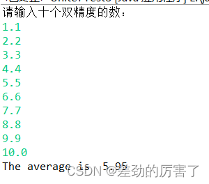 编写一个测试程序,提示用户输入十个双精度值,调用该方法,并显示平均值