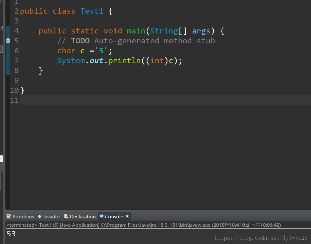 我们可以发现53 = 48+5而48是ASCALL值,说明直接转换字符型是转换的ASCALL值。怎么才能转化