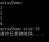 std::cout << "arrayDemo size:" << arrayDemoSize << std::endl;