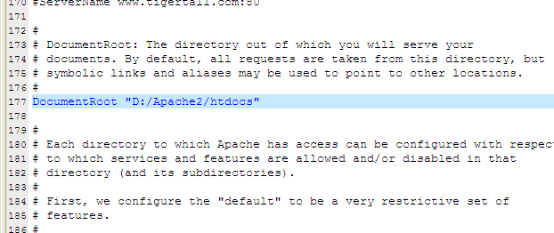 开始配置Apache, 在安装目录下的 ~\Apache Software Foundation\Apache2.2\conf\, 编辑http.conf文件,这是一个文本文件,从开始菜单也能看到他的配置。