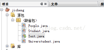 同一个包中三个类,people是student的父类,student是universtudent的父类,Test中进行调用