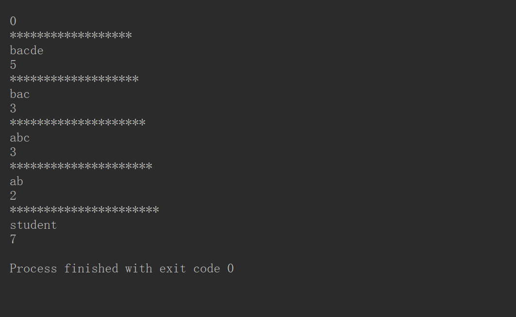 (4)int compareTo(String str)//比较两个字符串如果相等就返回0,,如果不相等依次比较ASCII码值如果个数相同就依次比较,如果不相同就输出个数的差值