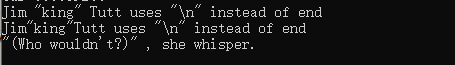 cout << R"(Jim "king" Tutt uses "n" instead of end)" << endl;