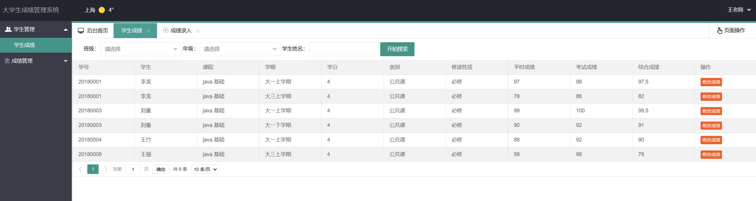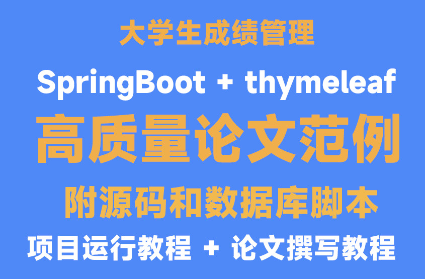 以上就是香蕉日记本最近收集整理的关于基于SpringBoot的大学生成绩管理系统,高质量论文范例1.项目技术栈2.适合对象3.适合课题4.项目功能概述5.高质量论文范例6.毕业设计撰写视频教程7.部分运行截图的全部内容,更多相关基于SpringBoot内容请搜索靠谱客的其他文章。