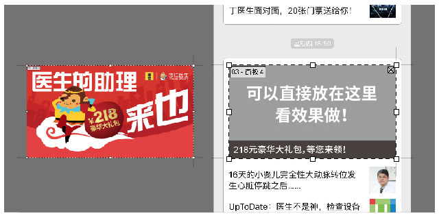 最后一边调整版式,一边放到微信界面上看效果,发挥你设计师的审美,做到最理想状态,别忘了加上logo,大功告成!