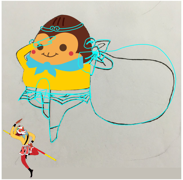 让"杏仁宝宝"穿上"悟空"的衣服玩COSPLAY,先在纸上将角色整体人物形象画出来。( 详细绘画技巧可参考《热门教程进阶版!教你给真人Q版形象做成好玩的Cosplay》 )