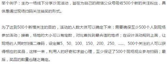 相同的道理,把微信公众号当成具体的一个品牌或者产品去运营,把目标受众群体当成潜在的消费者,“关注”即相当于“购买”。商品可以通过各类优惠活动促成新的消费,那么,公众号自然也可以通过各类活动吸引新的关注。