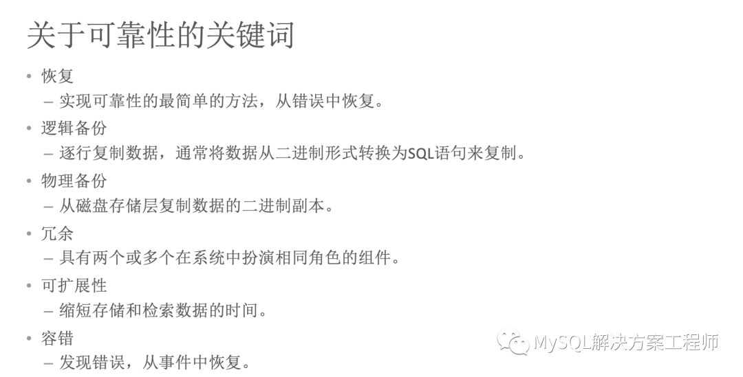 上面一页主要介绍了几个关键词汇,以及相关的定义,这些有助于理解可靠性和高可用性。