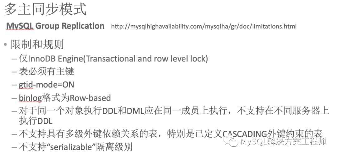 由于多主模式需要确保数据写入的一致性,所以在使用上有如下限制: