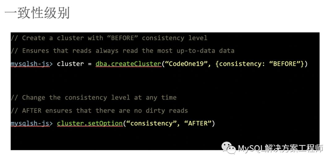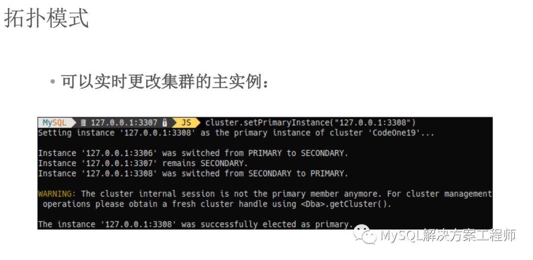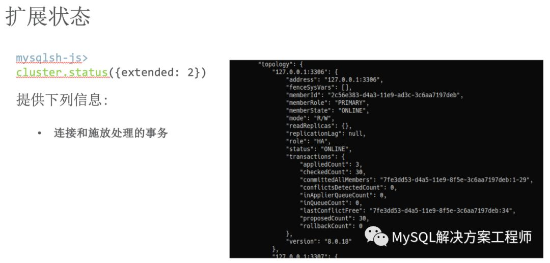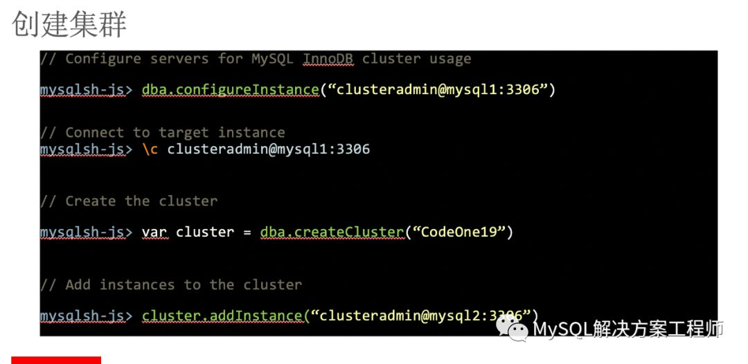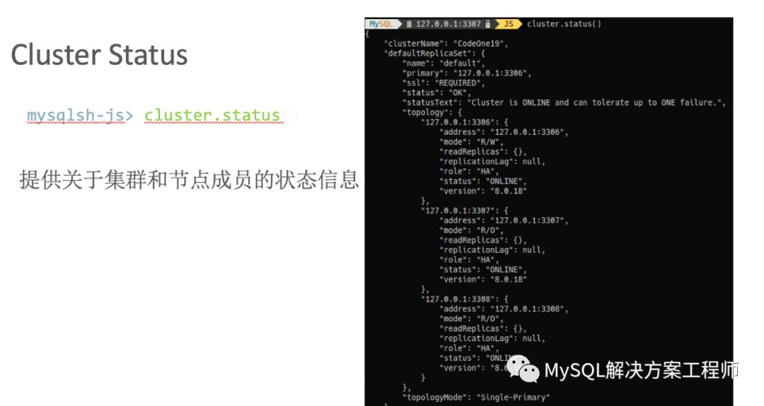 让我们看一下如何对 InnoDB Cluster 进行管理,我将会通过使用 MySQL Shell 为您展示相关内容。