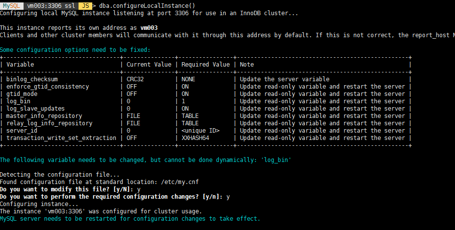 1) 每台机器分别执行(dba.configureLocalInstance()):