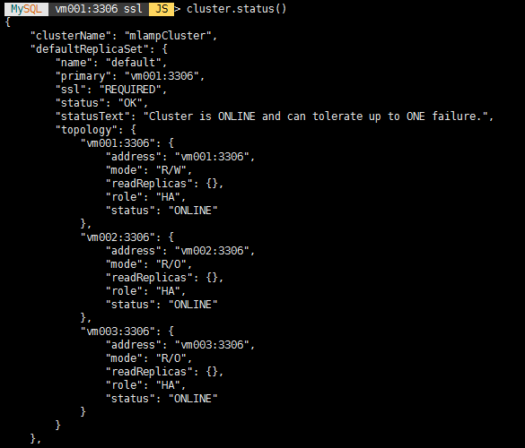 mysqlsh --uri root@vm001:3306