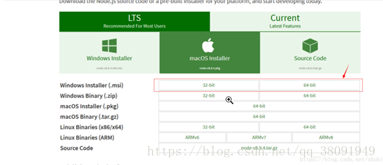 从地址:https://nodejs.org/en/download/ 下载相应系统的msi,双击安装。
